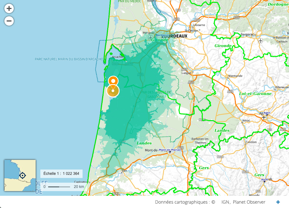 Rayon d’1h30 autour de Biscarrosse Bourg
